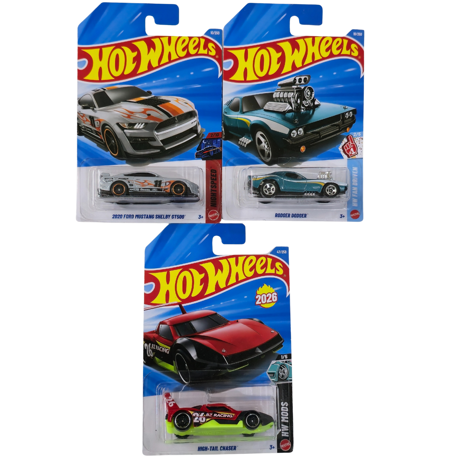 Combo Pack – Mustang Shelby GT500, Rodger Dodger & High-Tail Chaser (Set of 3) - Hot Wheels Imported